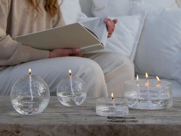 Breng warmte en sfeer in huis met de prachtige gehamerde olielamp Oscar van Leeff. Combineer de verschillende vormen en maten om een stralende en gezellige ambiance te creëren. De olielamp is gemaakt van mondgeblazen borosilicaatglas en heeft drie katoenen lonten. Zo geniet je in ieder seizoen van het jaar van de sfeervolle gloed. Met de meegeleverde kleine trechter kun je de lamp eenvoudig en schoon bijvullen zonder te morsen. Lees vóór gebruik de instructies op de onderzijde van de verpakking.